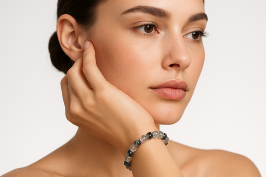 Pulsera de cuarzo con turmalina negra 6mm - Doble Energía, Equilibrio, Protección Energética